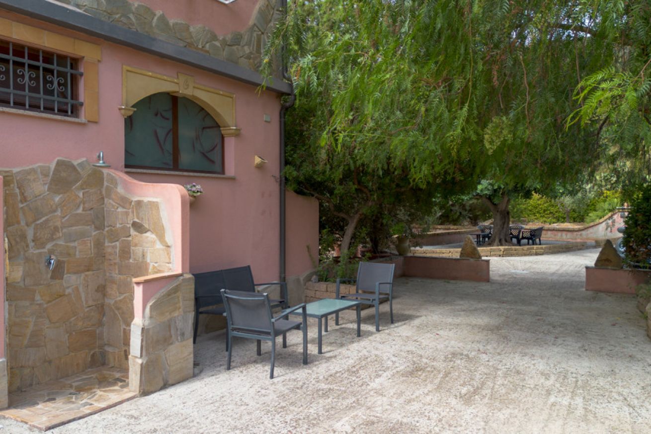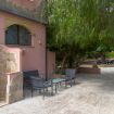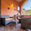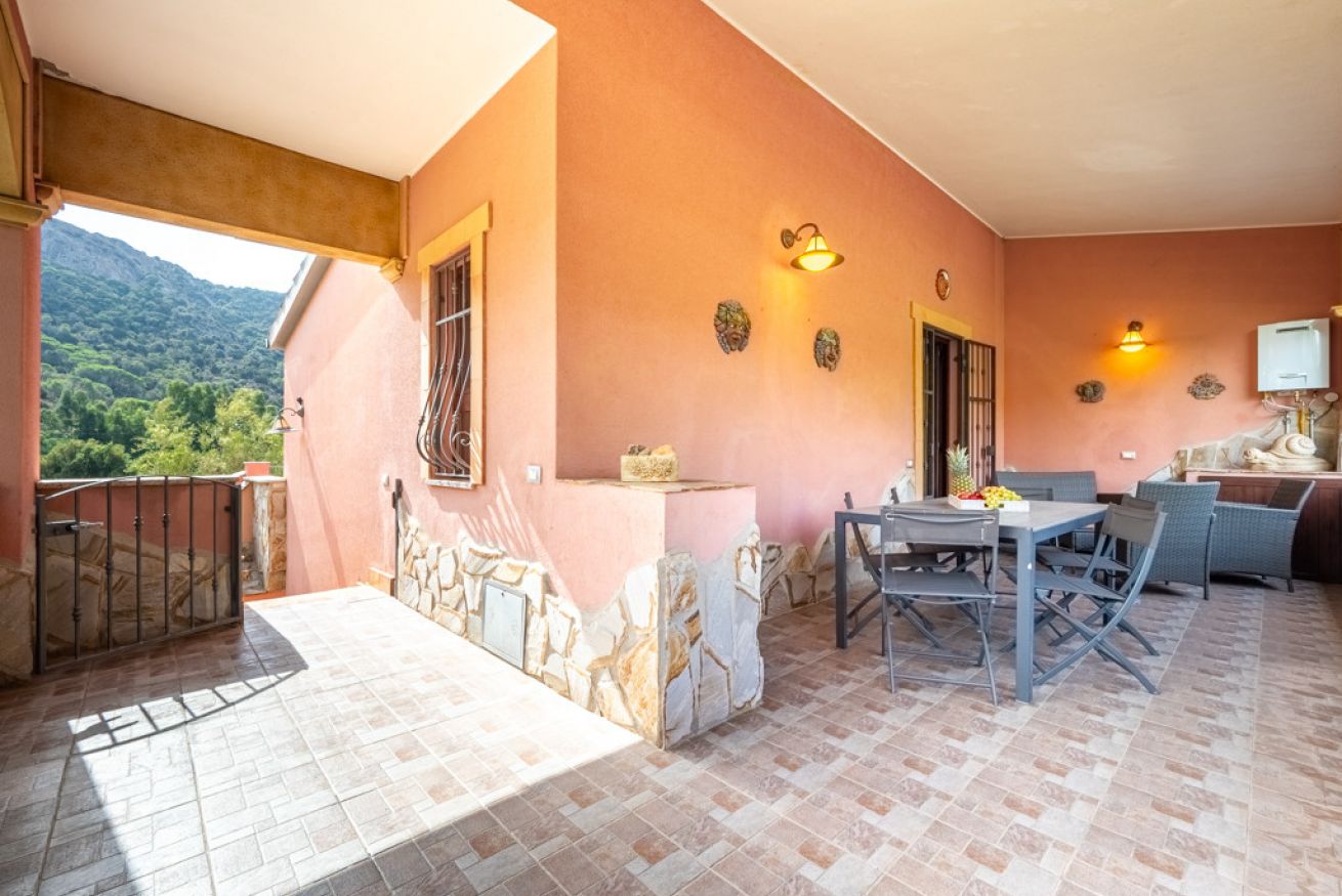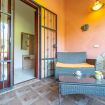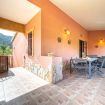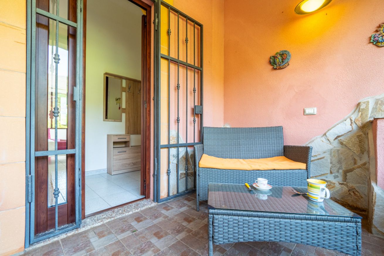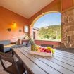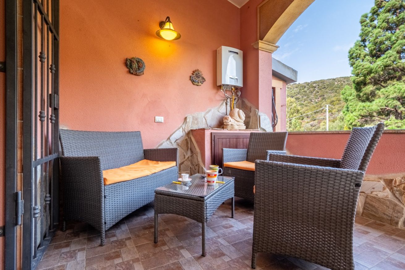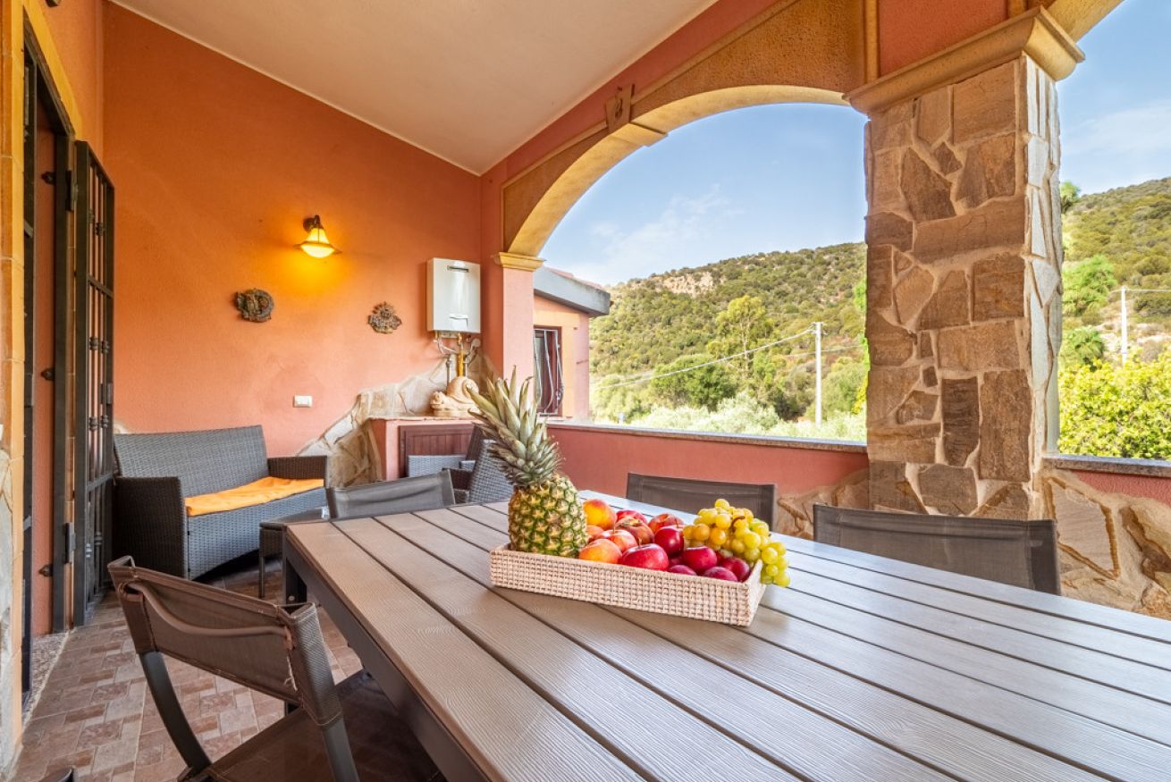 • l’ampia terrazza coperta con vista sulle verdi colline di Chia accoglie un secondo tavolo con 6 posti a sedere e poltroncine esterne.