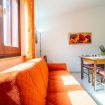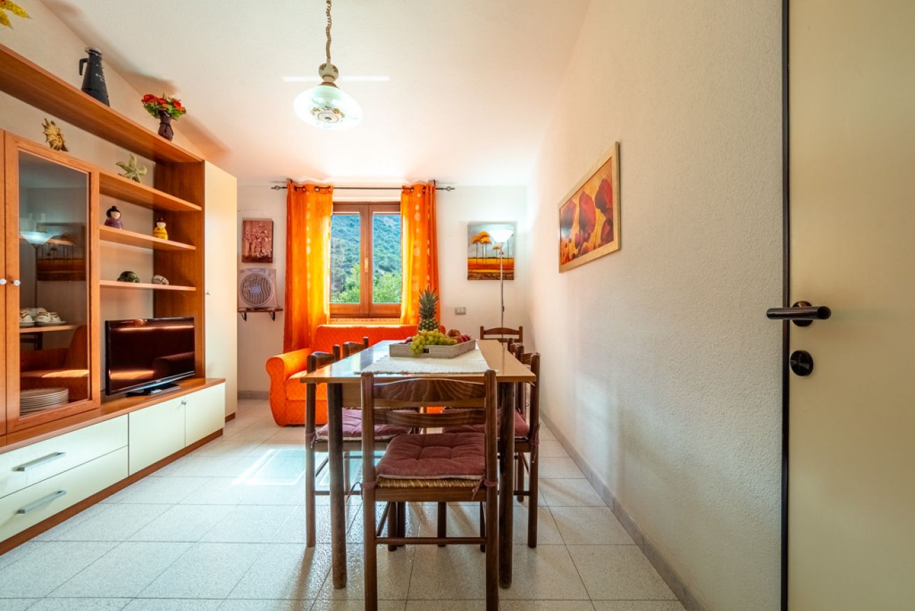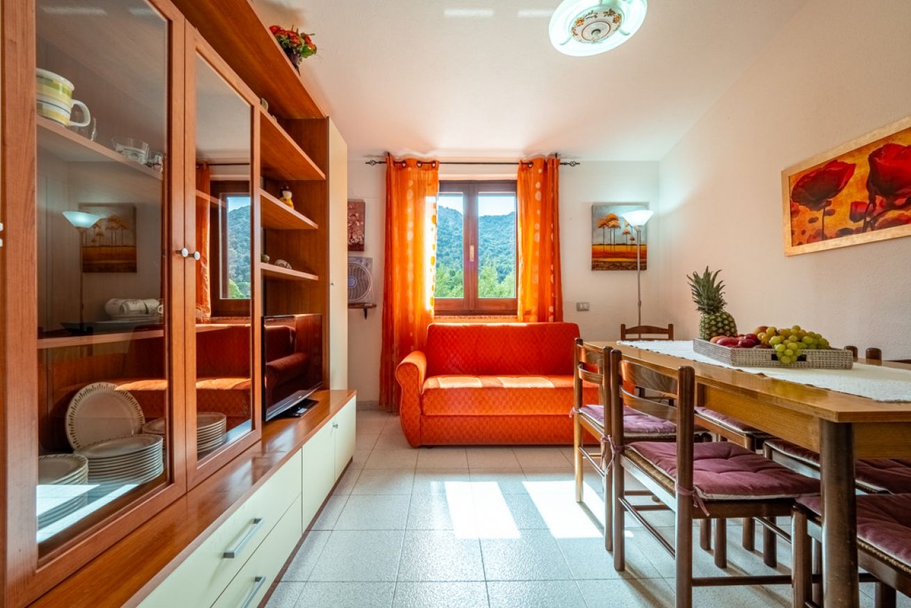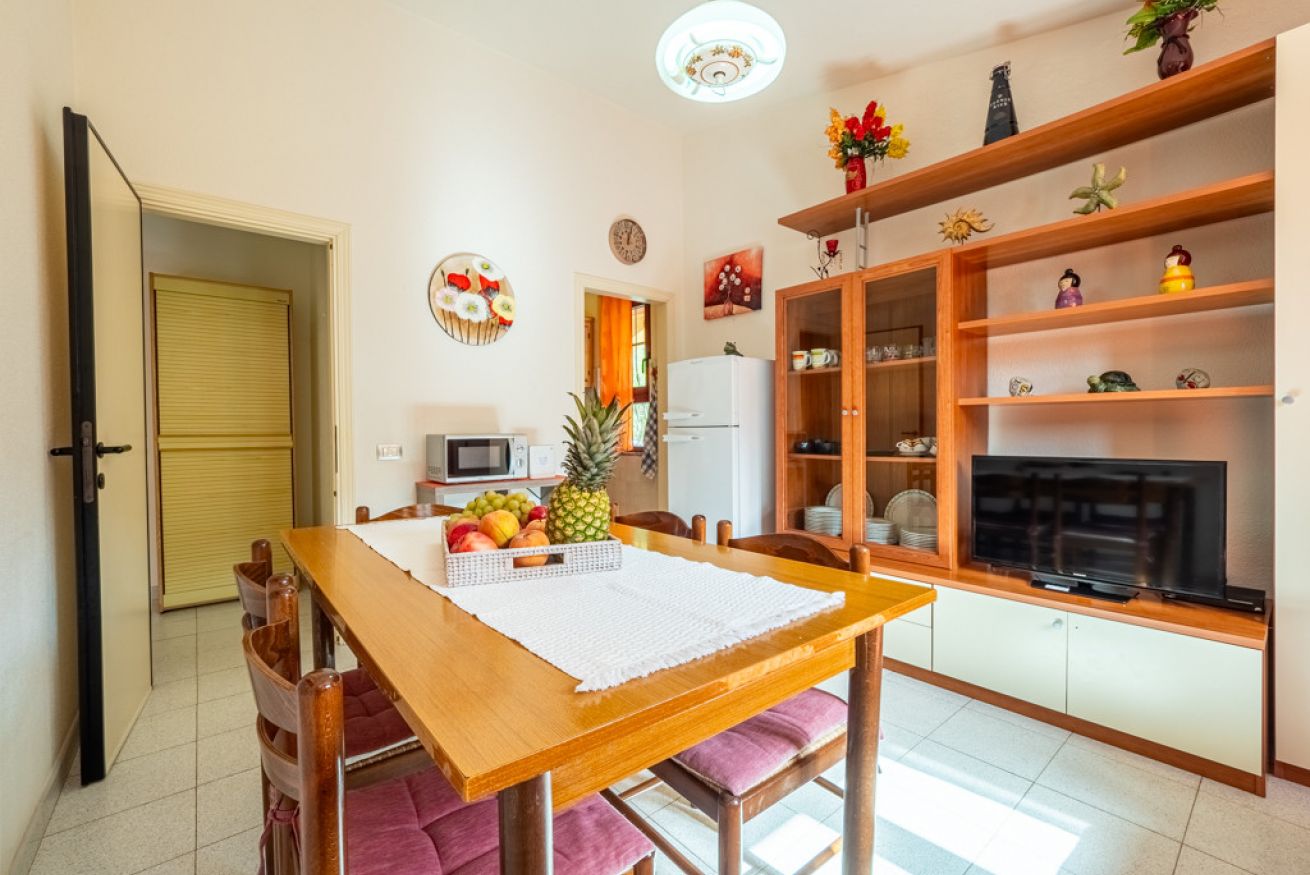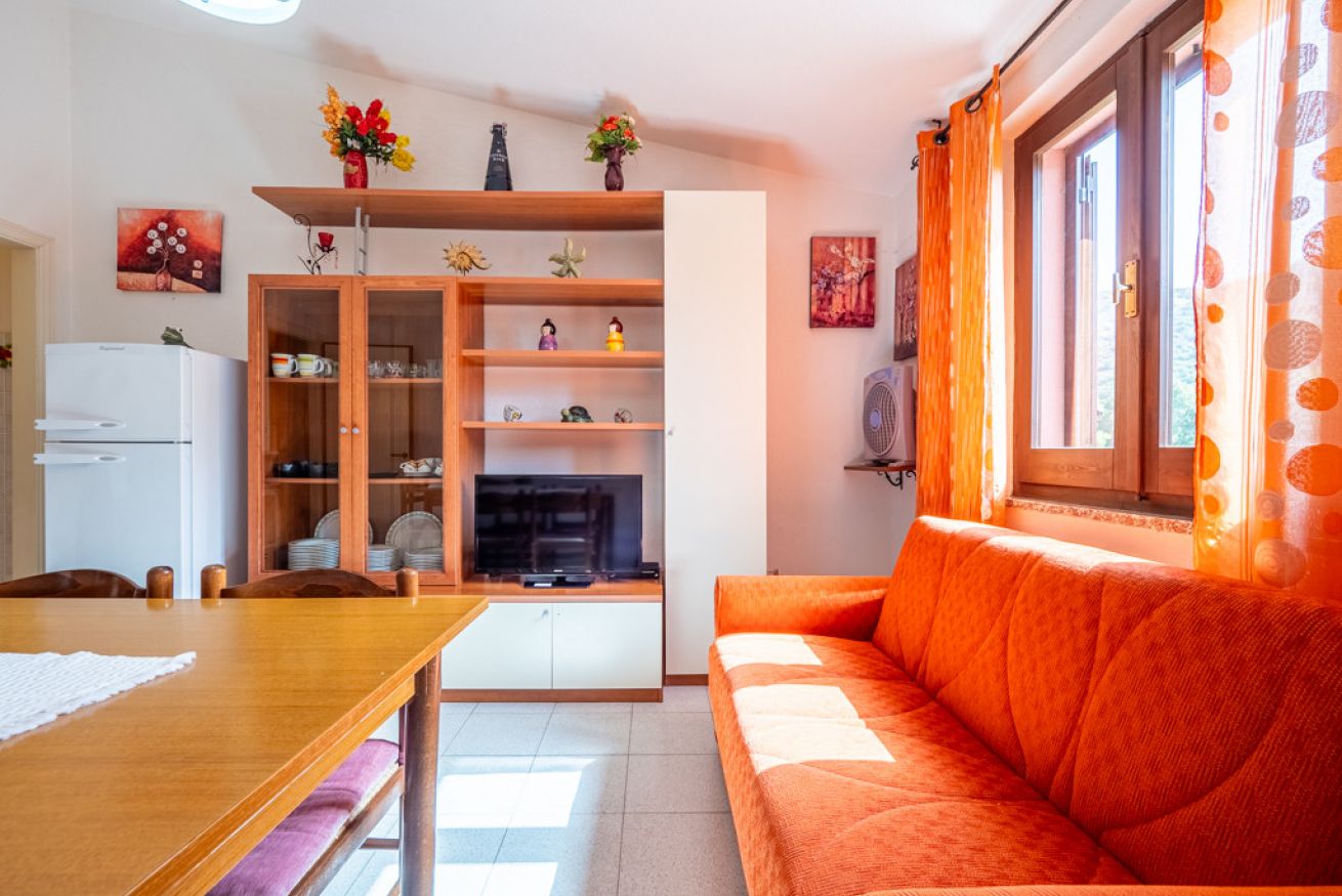 • soggiorno con tavolo a 6 posti, divano e Tv, angolo cottura equipaggiato