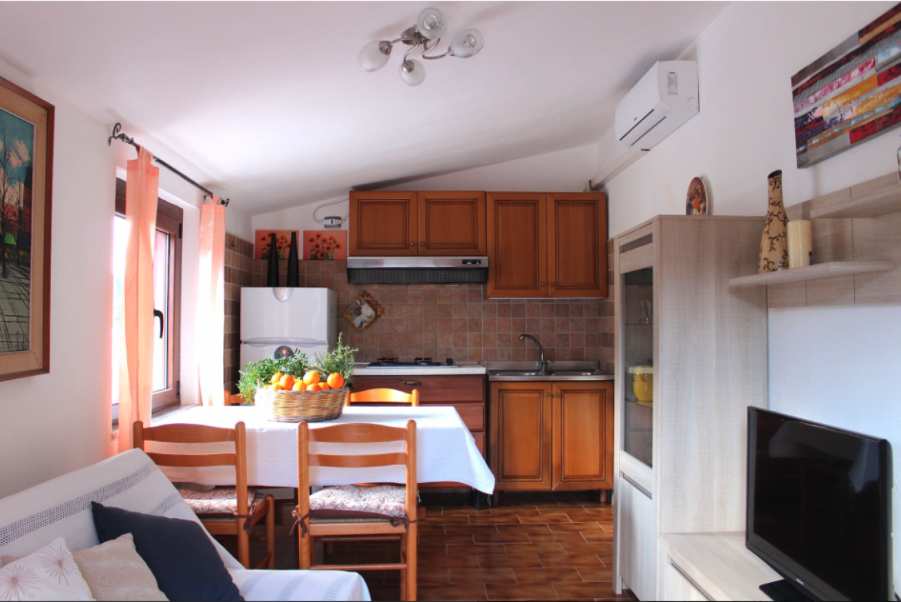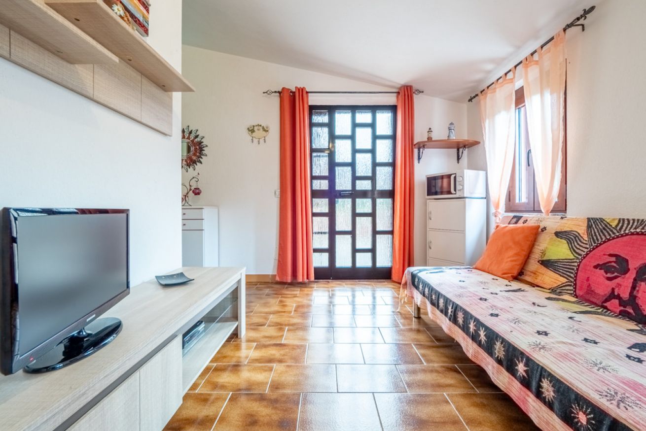 L’appartamento al primo e ultimo piano, è composto da: • soggiorno climatizzato, divano e Tv, tavolo con 4 posti e angolo cottura • una camera con letto a due piazze e accesso diretto alla terrazza • bagno completo con lavatrice • una brandina pieghevole permette di accomodare il terzo ospite. All’esterno l’ampia terrazza ospita un tavolino esterno. Oltre al cortile completo di doccia esterna e barbecue, sempre all’interno della proprietà, un grande prato è disponibile per passeggiare e far giocare i vostri bambini. Tutti gli ambienti sono dotati di finestre che guardano al cortile. Free Wi- Fi e posto auto. Le più belle spiagge di Chia e tutti i servizi utili a brevissima distanza.