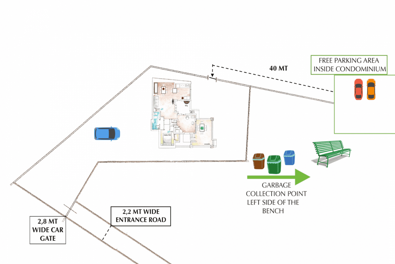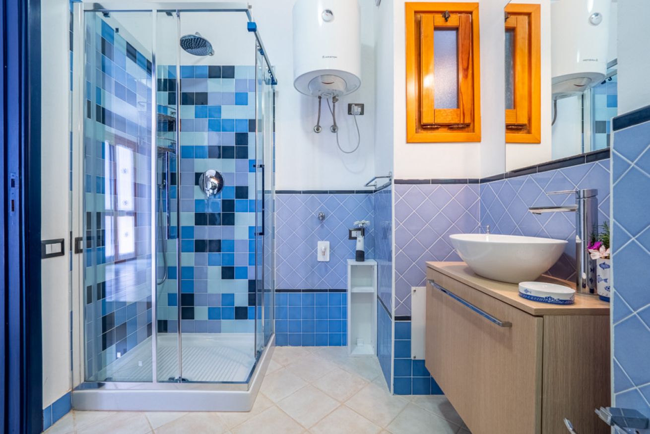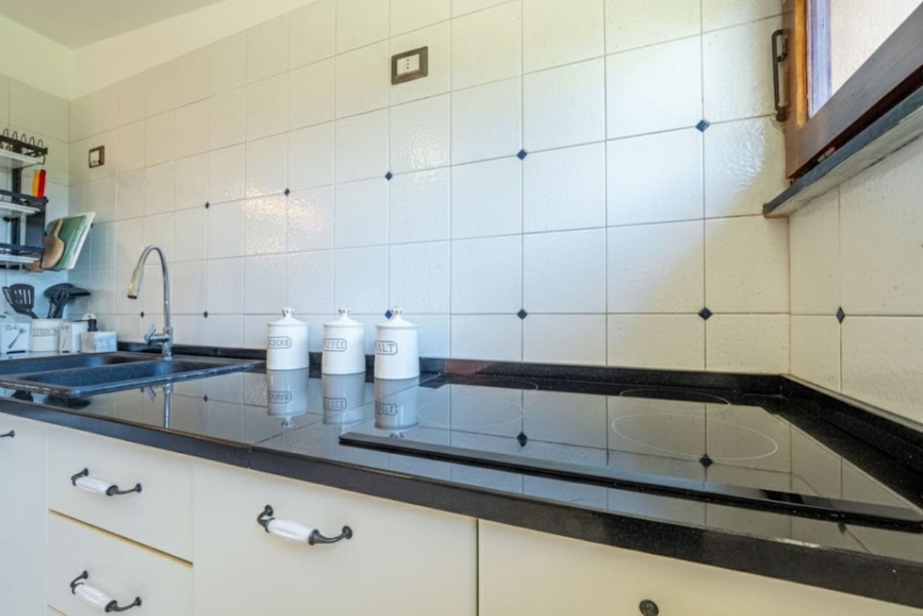 La veranda coperta, il solarium e il giardino godono di un panorama incredibile, e vi faranno rimanere in contatto con il mare e la natura durante tutta la vacanza. Esternamente disponibili anche il barbecue e la doccia esterna Riguardo gli spazi interni di Casa Alma, al piano terra: – sala pranzo con tavolo, cucinotto equipaggiato con piano a induzione, e area relax panoramica – camera da letto (letto doppio 160×190) – bagno completo con doccia. Al 1° piano troverete : camera da letto ( letto doppio 160×190) – camera con letto a castello (2 letti singoli 80×190) – bagno completo con doccia e lavatrice. La climatizzazione e il riscaldamento della casa vengono garantiti da n°4 efficienti Split di ultima generazione in ogni camera da letto e in soggiorno. Parcheggio e accesso alla struttura. Gli ospiti potranno: (opzione 1) parcheggiare direttamente in cortile, ma segnaliamo che è necessario percorrere in auto un viale stretto e in pendenza ( opzione 2) parcheggiare nel piazzale condominiale, che si trova all’interno dell’area privata del condominio, e percorrere una salita sterrata lunga circa 40 metri a piedi. Per la conformazione della struttura e in generale del quartiere, il soggiorno è consigliato solo a chi non ha problemi di deambulazione