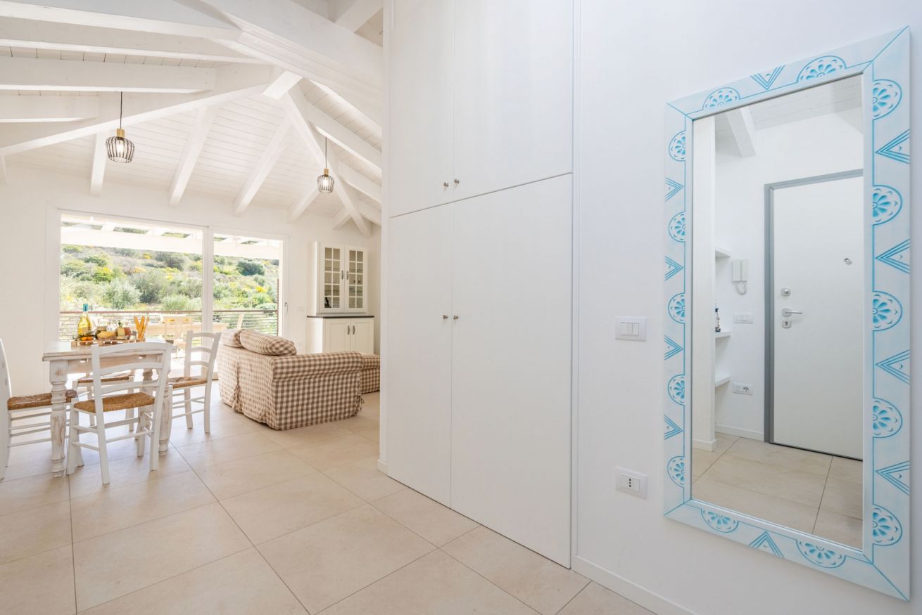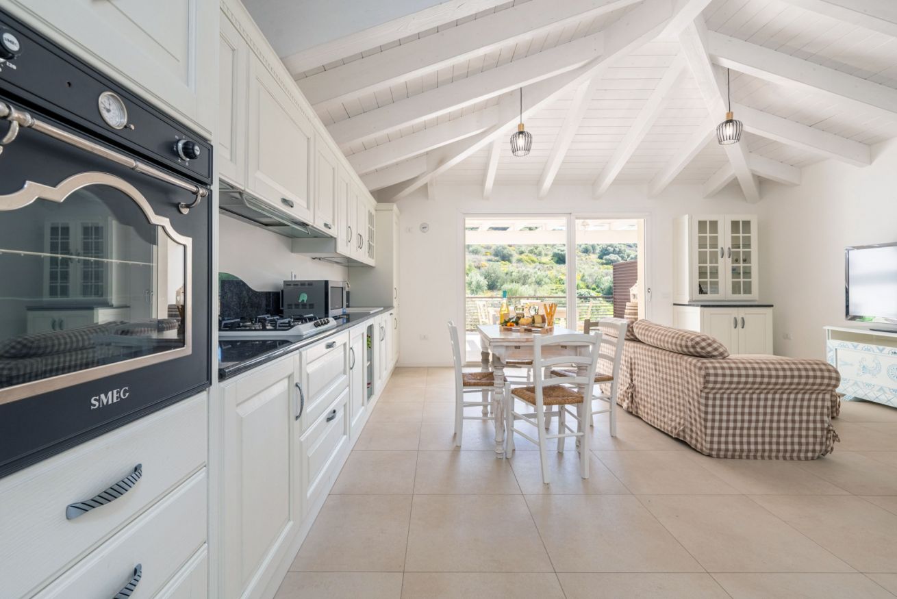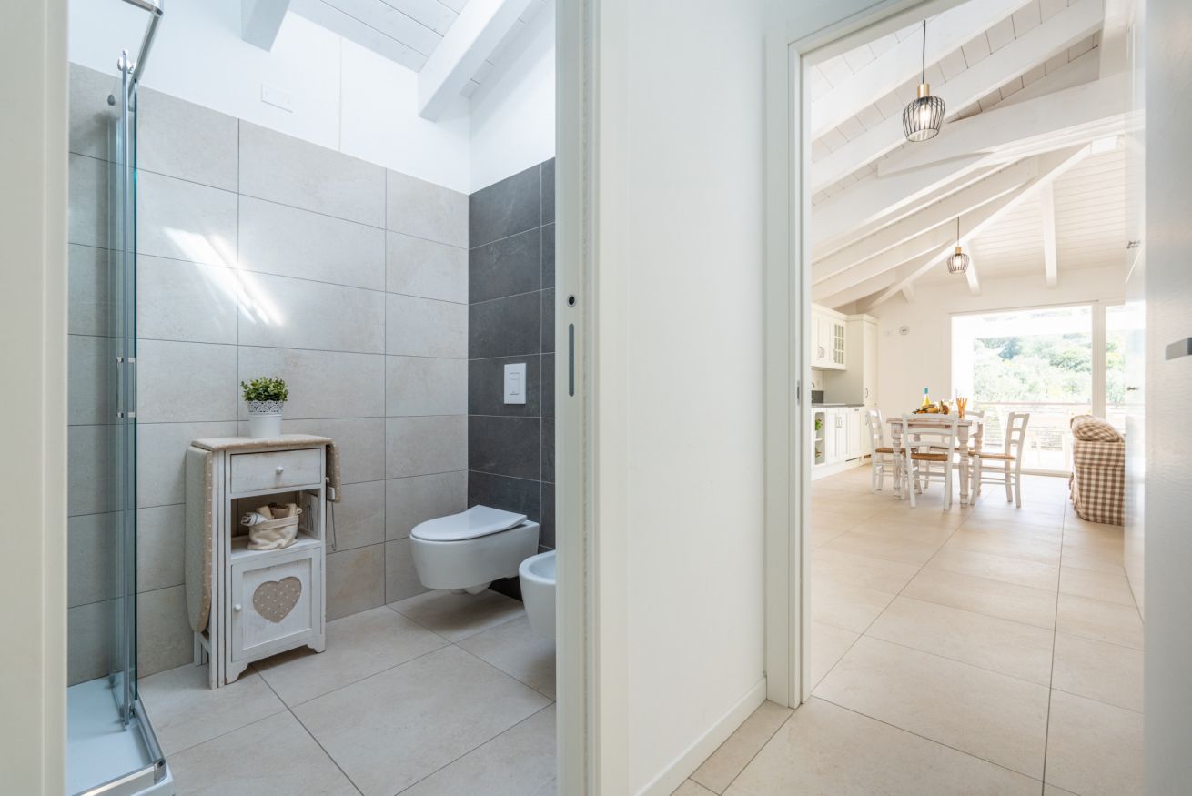 L’interno di Casa Helos, è caratterizzato da ambienti eleganti e funzionali, che creano un’atmosfera di puro relax. Il soggiorno, luminoso e accogliente, insieme alla grande terrazza a livello, danno vita a uno spazio perfetto per momenti di relax. La cucina è equipaggiata di tutti gli elettrodomestici necessari, compresa la lavastoviglie, per preparare i vostri pasti a casa. Oltre al tavolo interno, quello esterno è perfetto per pranzi e cene all’aria aperta, immersi nella tranquillità della natura fronte casa. L’ampia camera da letto matrimoniale è dotata di climatizzazione, due armadi spaziosi portafinestra su finto terrazzo. Due bagni completi, di cui uno en-suite, entrambi dotati di doccia. La casa che si sviluppa su un unico livello si trova al primo piano e l’ingresso è raggiungibile mediante una rampa di scale. Accesso e spazi: gli ospiti hanno accesso in maniera esclusiva alla casa e non condividono spazi con altre persone. Una stanza, un mobile in soggiorno, il mobile Tv e tre ante della cucina, non sono accessibili per gli ospiti. Il posto auto è disponibile nell’area parcheggio condominiale.