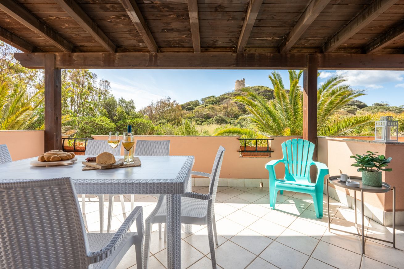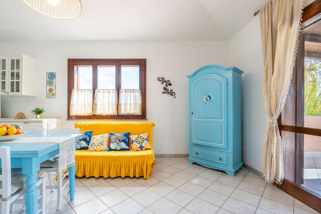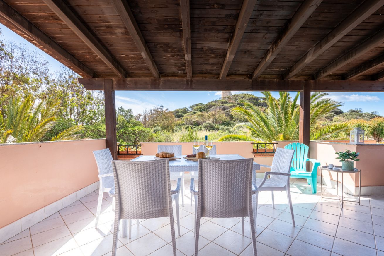 L’appartamento climatizzato, al primo e ultimo piano è inserito in un magnifico contesto naturale a 80 metri dalla spiaggia di Sa Colonia e dalla spiaggia di Su Portu a Chia. Due camere da letto, un bagno e un soggiorno con angolo cottura equipaggiato lo rendono un alloggio adatto a chi cerca lo stretto contatto con il mare e la natura. Può ospitare fino a 4 adulti più un neonato. In veranda potrai godere dei tuoi pasti all’aria aperta ascoltando il dolce rumore delle onde. Free Wi-Fi e parcheggio gratuito. Accesso privato alle spiagge.