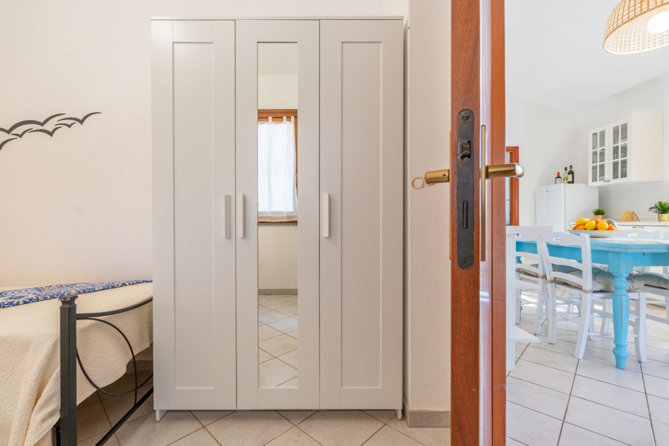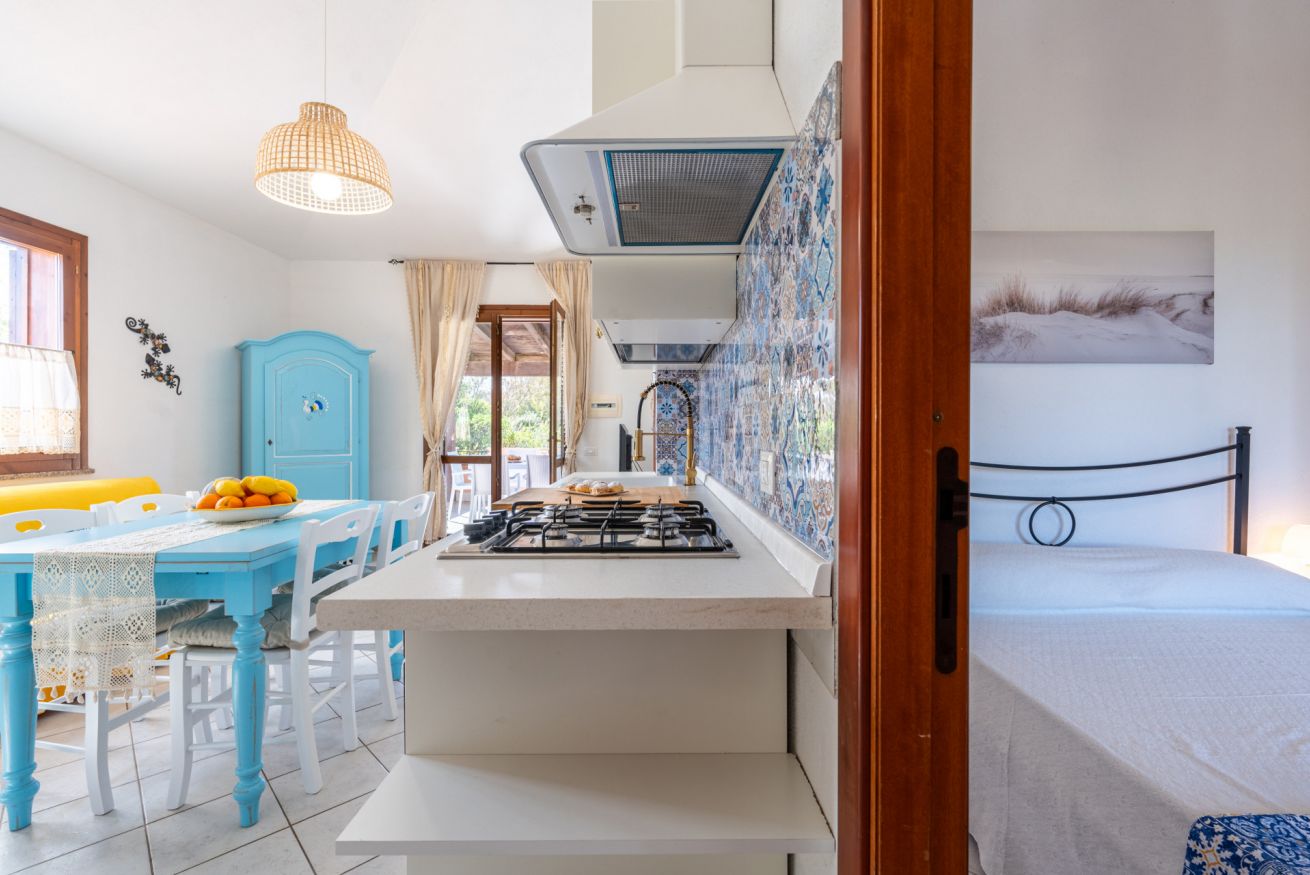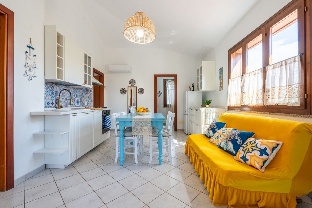 L’appartamento climatizzato, al primo e ultimo piano è inserito in un magnifico contesto naturale a 80 metri dalla spiaggia di Sa Colonia e dalla spiaggia di Su Portu a Chia. Due camere da letto, un bagno e un soggiorno con angolo cottura equipaggiato lo rendono un alloggio adatto a chi cerca lo stretto contatto con il mare e la natura. Può ospitare fino a 4 adulti più un neonato. In veranda potrai godere dei tuoi pasti all’aria aperta ascoltando il dolce rumore delle onde. Free Wi-Fi e parcheggio gratuito. Accesso privato alle spiagge.