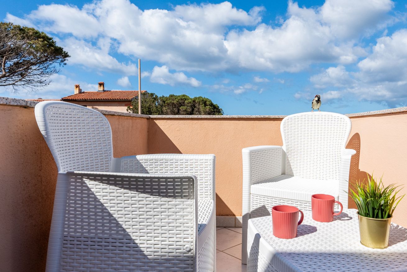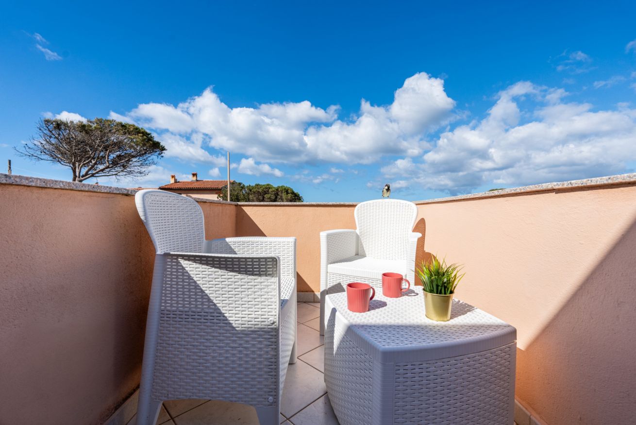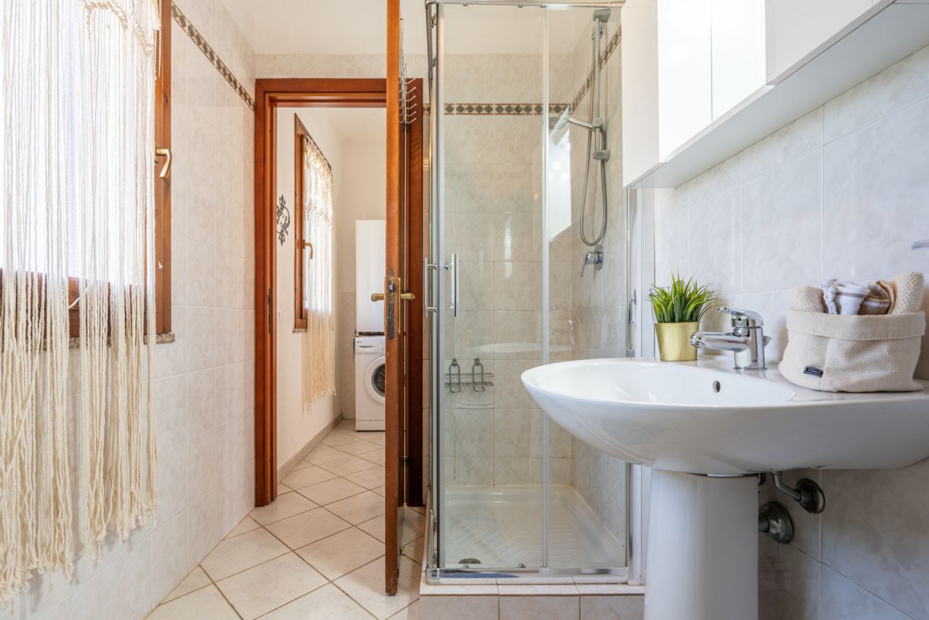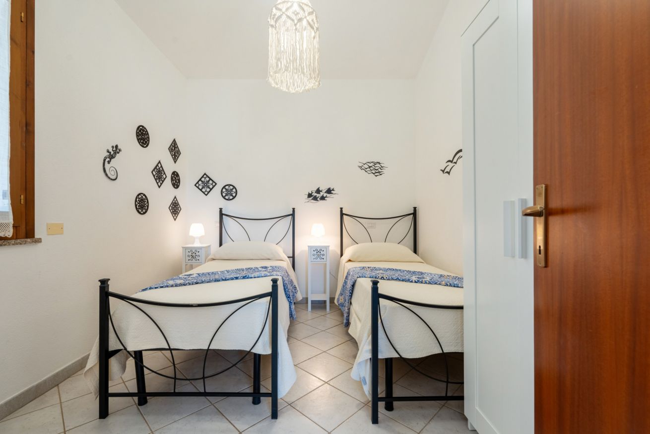L’appartamento al primo e ultimo piano è composto da • soggiorno completo di tavolo con 4 posti • cucinino equipaggiato con lavastoviglie • una camera con letto a due piazze e accesso a terrazzino vista mare • una camera con due letti singoli • bagno con doccia e lavatrice • una grande terrazza con tavolo esterno con 6 posti a sedere. Due split per la climatizzazione/riscaldamento sono disponibili in soggiorno e nella camera con letto a due piazze. Free Wi-Fi illimitato e posto auto. La casa fa parte di una villa di famiglia, dove sono presenti in totale 4 abitazioni. Potrete posteggiare gratuitamente il vostro veicolo nel vialetto d’ingresso e usufruire della porzione di cortile fronte casa dove sono presenti doccia esterna e barbecue.