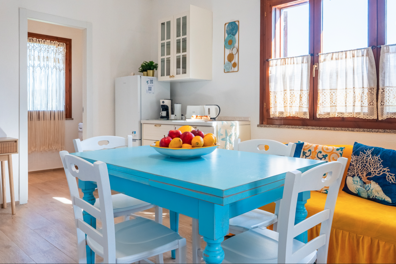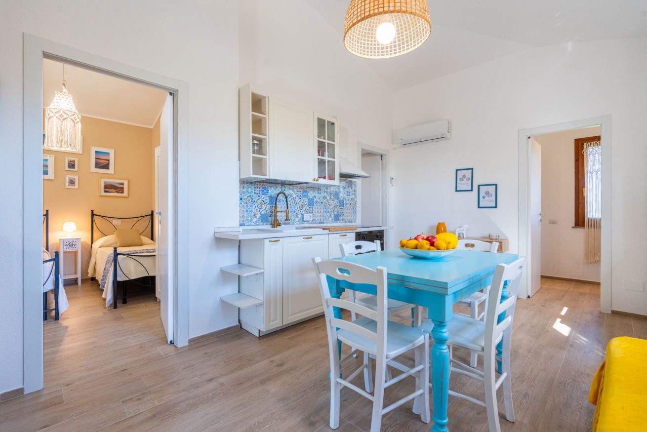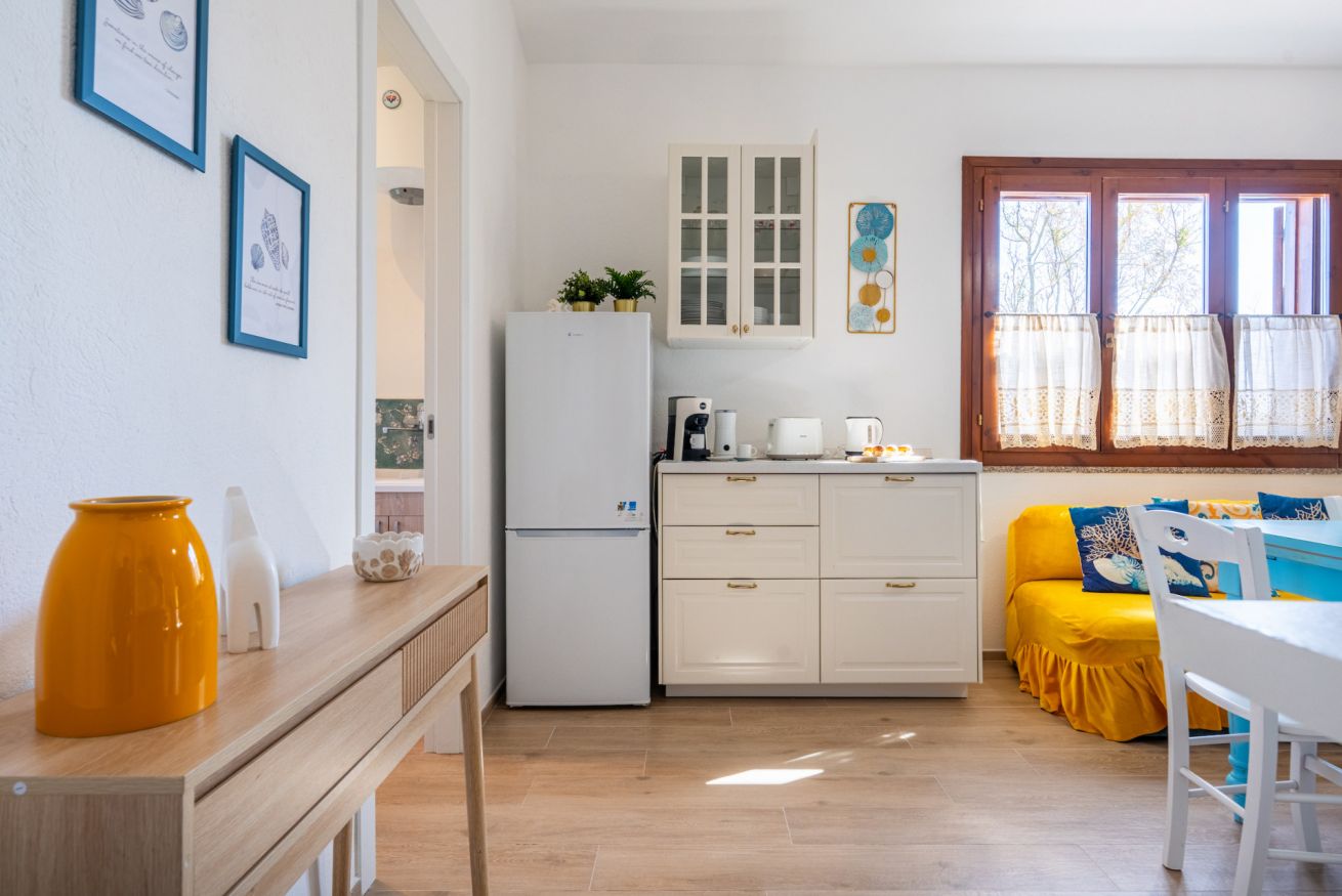 The air-conditioned apartment, on the first and last floor, is set in a magnificent natural environment, 80 meters from Sa Colonia beach and Su Portu beach in Chia. Two bedrooms, one bathroom, and a living room with an equipped kitchenette make it suitable for those seeking close contact with the sea and nature. It can accommodate up to 4 adults plus a baby. On the veranda, you can enjoy your meals outdoors while listening to the gentle sound of the waves. Free Wi-Fi and free parking are available. Private access to the beaches.