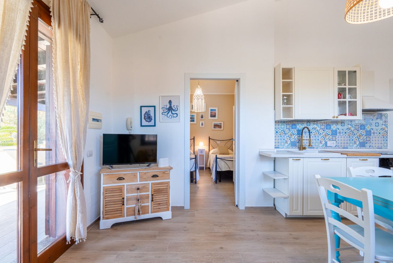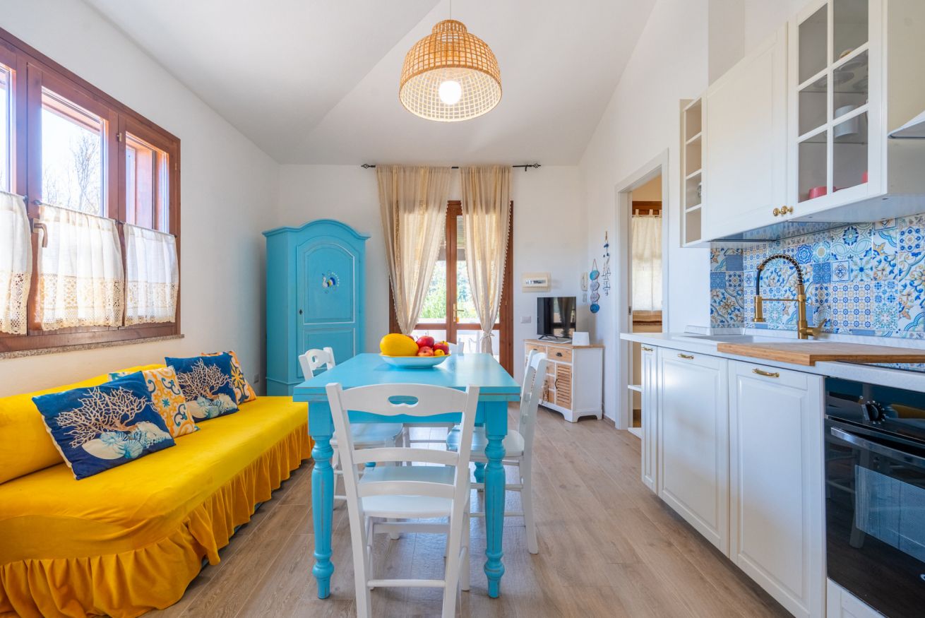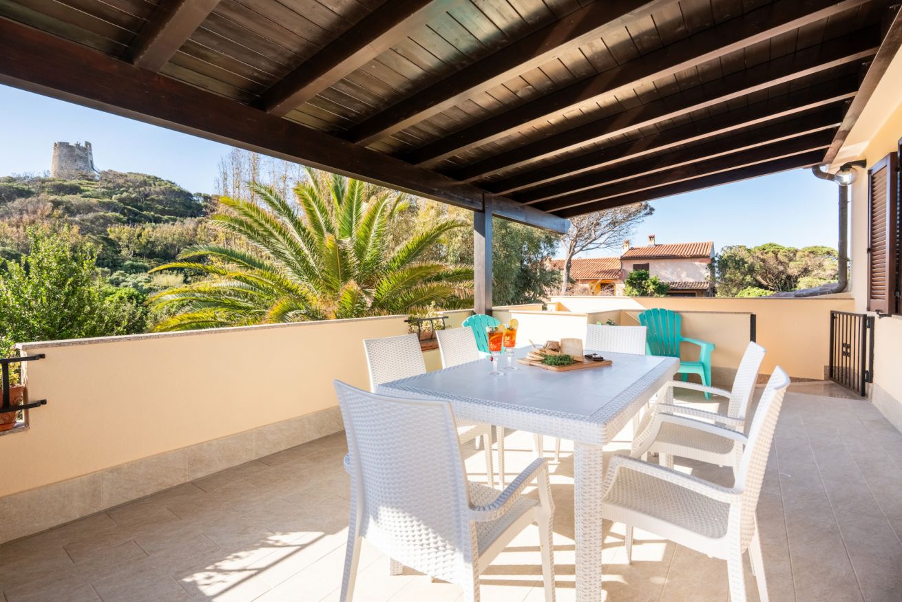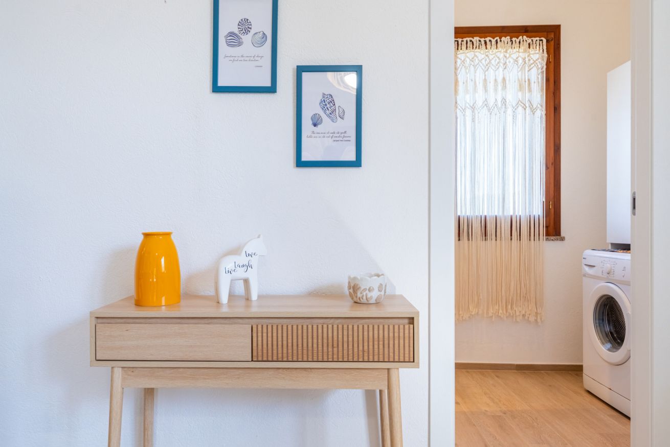 The air-conditioned apartment, on the first and last floor, is set in a magnificent natural environment, 80 meters from Sa Colonia beach and Su Portu beach in Chia. Two bedrooms, one bathroom, and a living room with an equipped kitchenette make it suitable for those seeking close contact with the sea and nature. It can accommodate up to 4 adults plus a baby. On the veranda, you can enjoy your meals outdoors while listening to the gentle sound of the waves. Free Wi-Fi and free parking are available. Private access to the beaches.