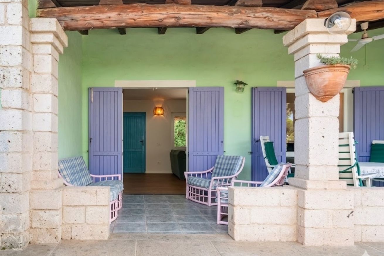 La villa internamente dispone di un ampio soggiorno con Tv e Free Wi-Fi illimitato, una cucina super moderna e accessoriata, tre camere da letto, due bagni completi e ospita fino a 6 adulti. La climatizzazione canalizzata o attraverso Split è disponibile sia in soggiorno che nelle camere da letto: • camera con letto doppio • camera con due letti singoli • camera con letto doppio. Il primo bagno completo ristrutturato è rifinito con materiali di alta qualità e dotato di doccia ultra large. Invece il secondo bagno completo e il bagnetto di servizio, dove è presente la lavatrice, non sono ristrutturati. La terrazza coperta è presente sia sul lato cucina con un comodo tavolo, che sul lato soggiorno, dove gli arredi da giardino permettono il relax all’aria aperta. La proprietà, gode di due accessi indipendenti ed è circondata dal cortile sui quattro lati. Posto auto all’interno del cortile per 3 veicoli.