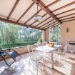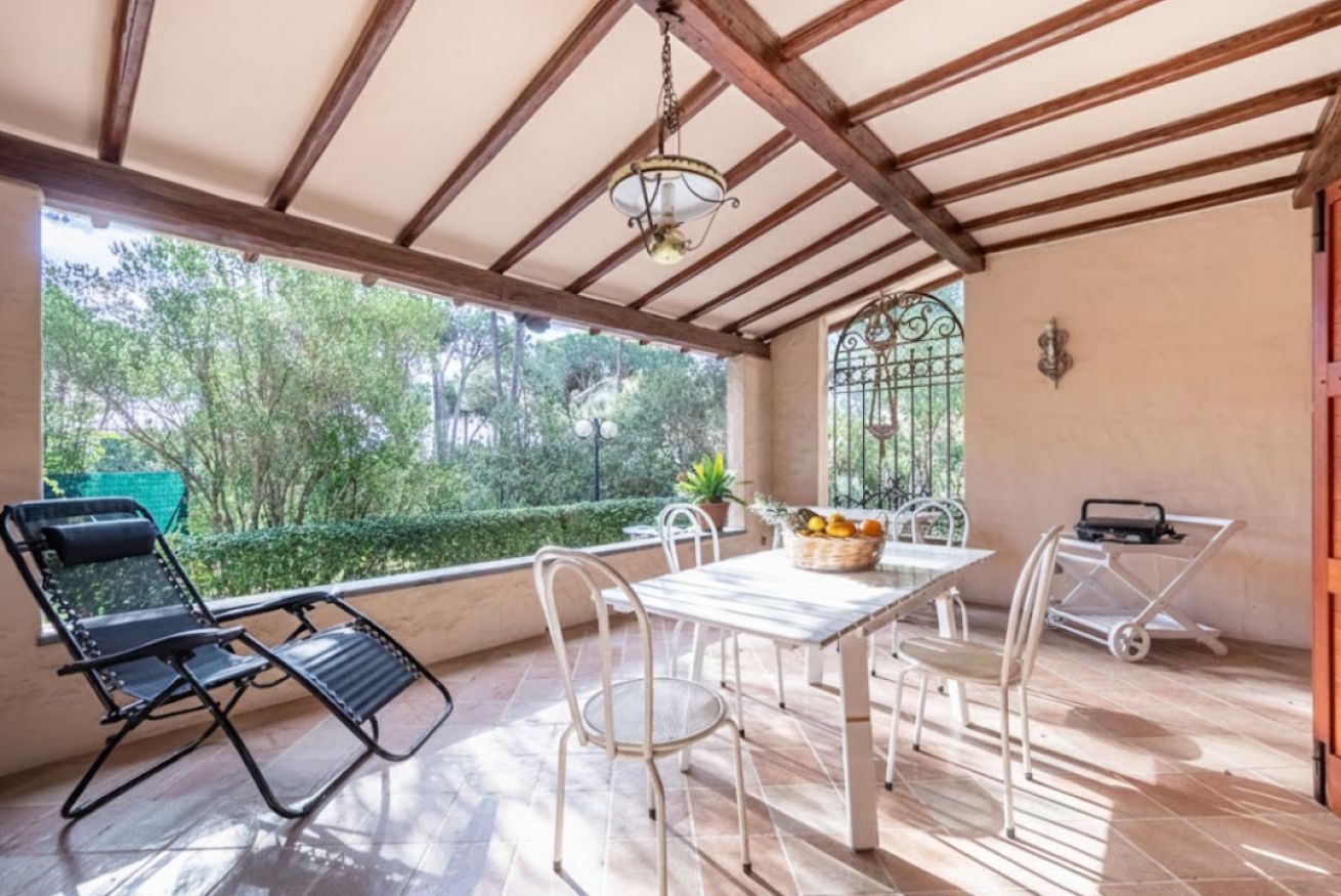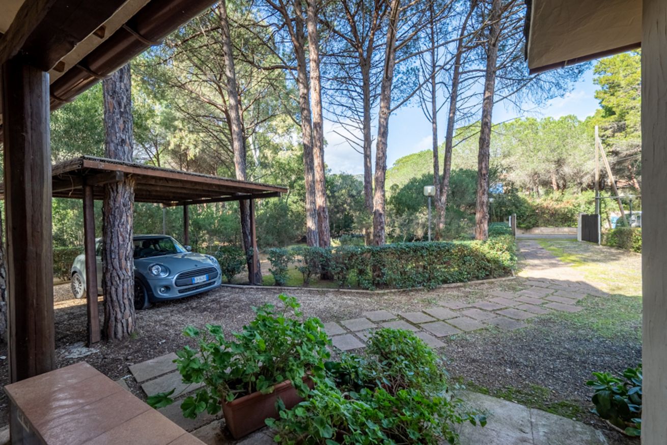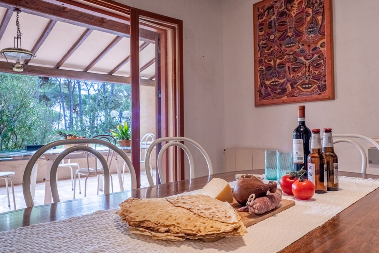 La villa indipendente è circondata su tutti i lati da un grande cortile ombreggiato dalla pineta. Gli spazi al piano terra sono: - il soggiorno climatizzato con la sala pranzo, la cucina indipendente equipaggiata, una piccola lavanderia, una camera da letto e il 1° bagno completo. Una rampa di scale vi condurrà al 1° piano dove sono presenti le altre due camera da letto, e il 2° bagno completo. La climatizzazione caldo e freddo è disponibile sia in soggiorno che in tutte le camere da letto. Al piano terra mediante Split, al 1° piano mediante climatizzazione canalizzata. Gli ospiti hanno accesso a tutta la villa tranne che al piano interrato. Due mobili in casa vengono tenuti a uso privato. Gli ospiti non condividono spazi e godono della proprietà in maniera esclusiva. Il giardino e gli spazi esterni vengono periodicamente visitati dal personale di servizio